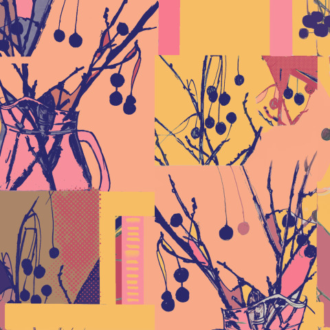 Абстракция колорблок картина ветки вишня натюрморт растения кувшин яркий модный трендовыецвета интерьерный