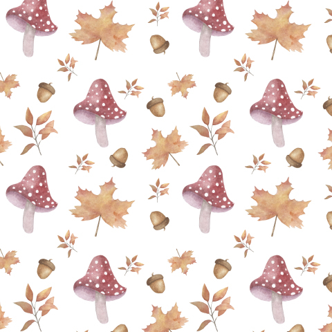 Акварельные листья и грибы