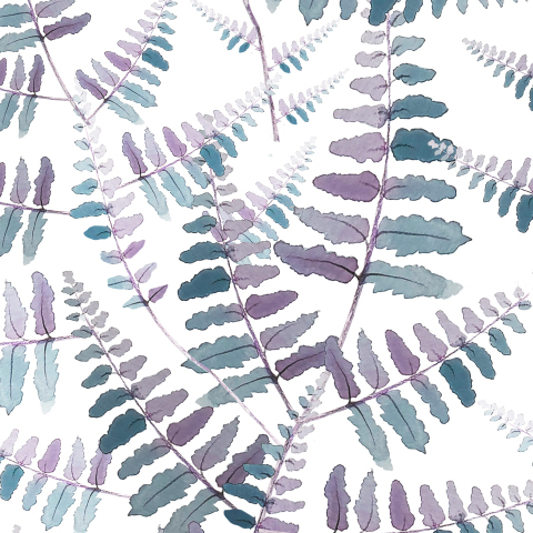 Акварельные листья папоротника на белом фоне.