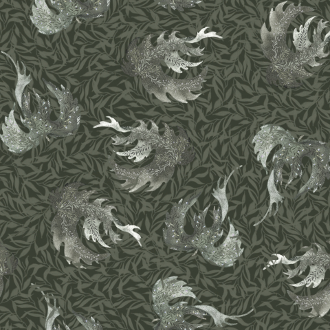 АКВАРЕЛЬНЫЕ ЛИСТЬЯ В СТИЛЕ УИЛЬЯМА МОРРИСА ЗЕЛЕНОМ