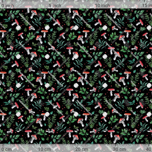 Акварельные мухоморы и листья на черном фоне by Loft Bat 698 DPI
