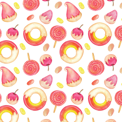 акварельные радужные пончики и сладости