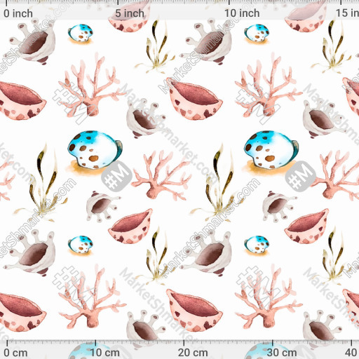 Акварельные ракушки и кораллы на белом фоне. by Daria Kotlubaeva 259 DPI