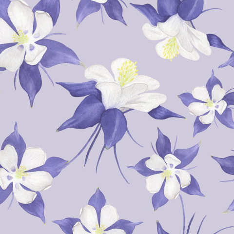 акварельные цветы аквилегии принт для одежды постельное белье подушка шторы лавандовый фон фиолетовый цвет интерьерная печать паттерн