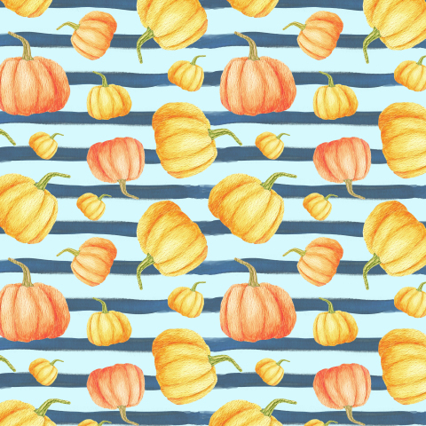 Акварельные желтые тыквы на полосатом голубом фоне.