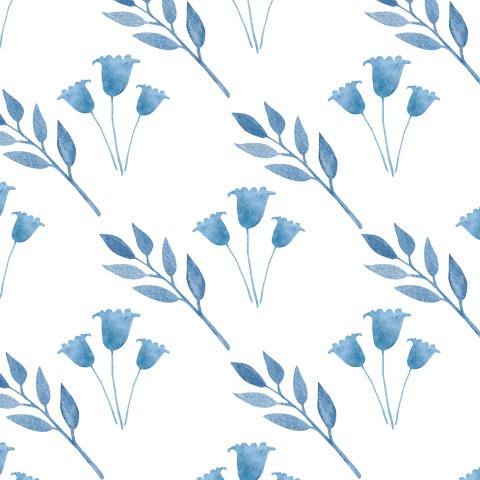 Акварельный узор с колокольчиками и листьями
