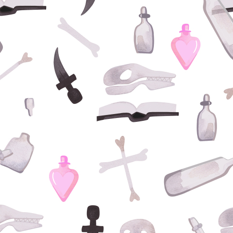 Артефакты ведьмы: череп, кости, книги, зелья, любовный напиток