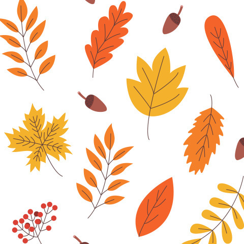 Autumn leaves, branches and acorns
