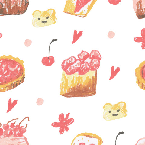 Бесшовный паттерн с розовыми десертами восковыми мелками by Lucyinyourheart
