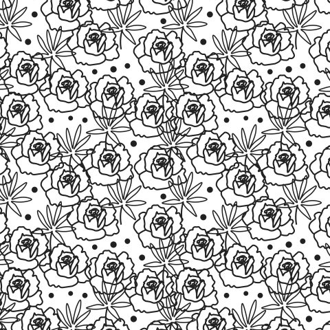 Бесшовный узор с чёрными цветами на белом фоне by Lucyinyourheart