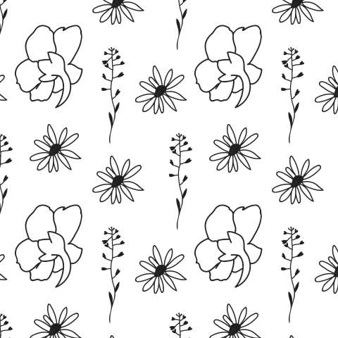 Бесшовный узор с чёрными цветами на белом фоне by Lucyinyourheart