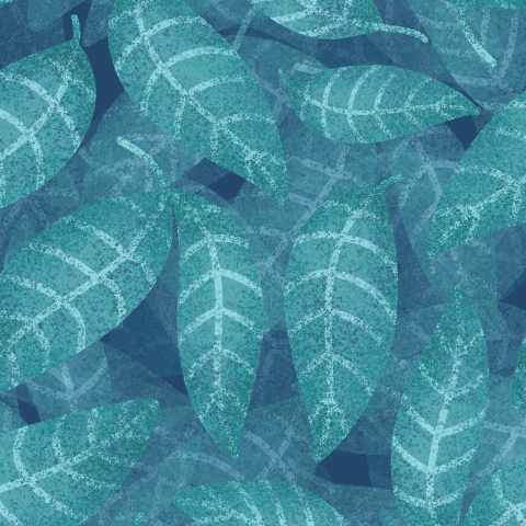 Бирюзовые декоративные листья на тёмно-синем (крупные)