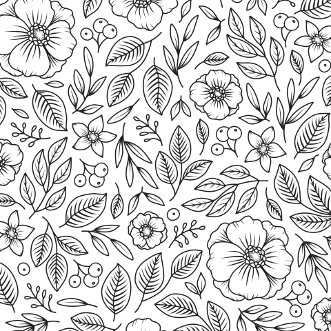 цветы, цветочки, в цветочек, анемоны, природа, растительный, растения, цветочный, природный, интерьерный, женский, ретро, винтаж, сад, белый, чёрный, чёрно-белый, контурный, лес, лесной, flower, floral, листья, outline