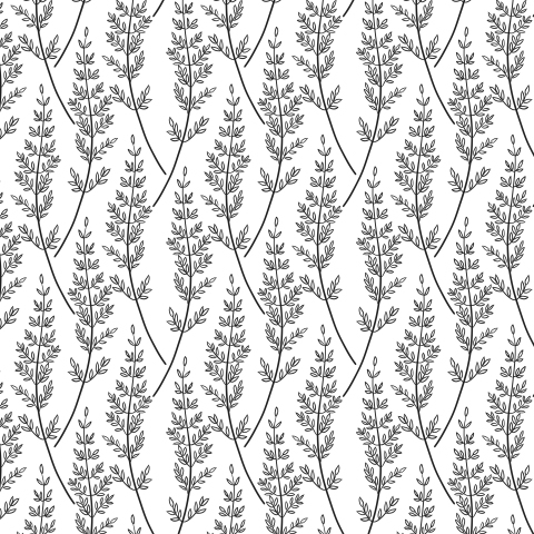 Чёрно-Белый Рисунок С Веточками, Листьями, Травами
