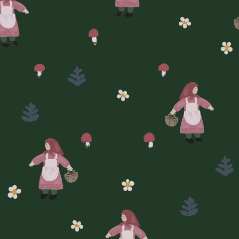Девочка в дремучем лесу. Наивный милый сказочный принт