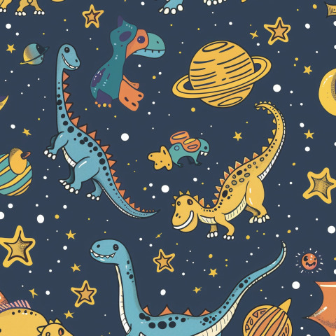 Динозаврики в космосе темный фон