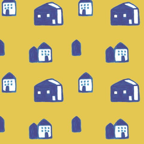 домики жёлтый, синий, белый, милый, детский, дудлы, акварельный, забавный, уют, кавай, дудл стиль