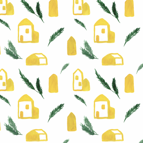 домики жёлтый, зеленый, белый, милый, детский, дудлы, акварельный, забавный, уют, кавай, дудл стиль
