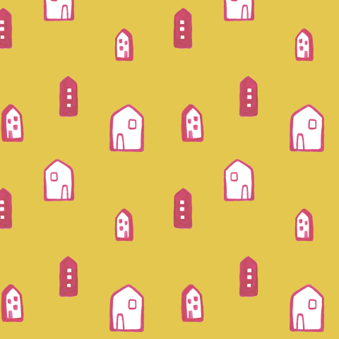 домики жёлтый, красный, синий, белый, милый, детский, дудлы, акварельный, забавный, уют, кавай, дудл стиль