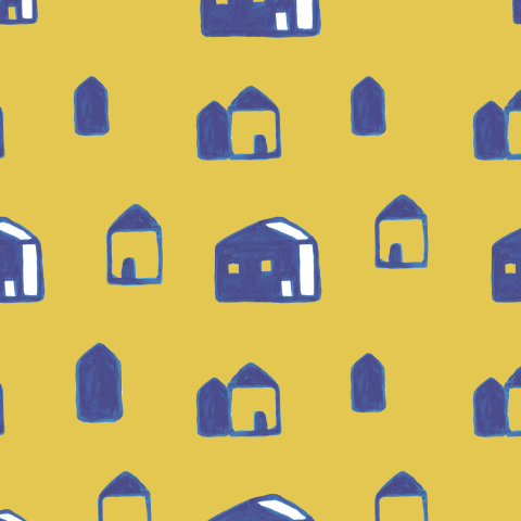 домики жёлтый, синий, белый, милый, детский, дудлы, акварельный, забавный, уют, кавай, дудл стиль