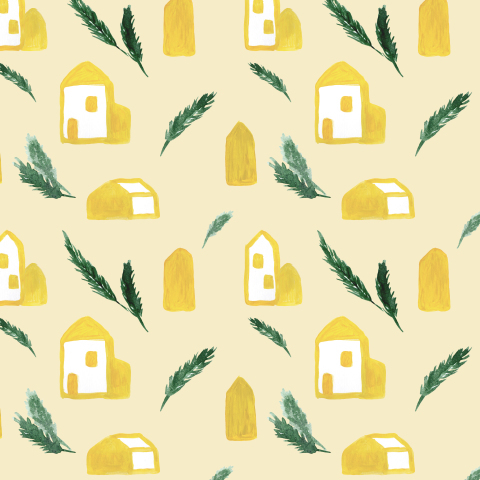 домики жёлтый, зеленый, милый, детский, дудлы, акварельный, забавный, уют, кавай, дудл стиль