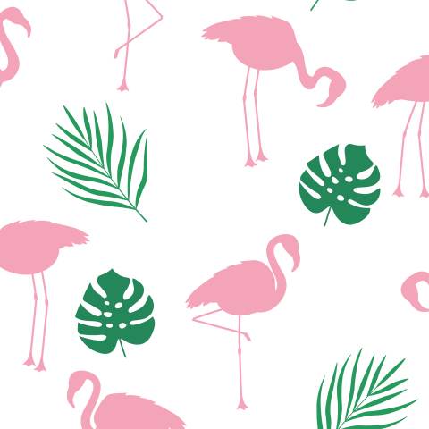 Фламинго силуэты и тропические листья