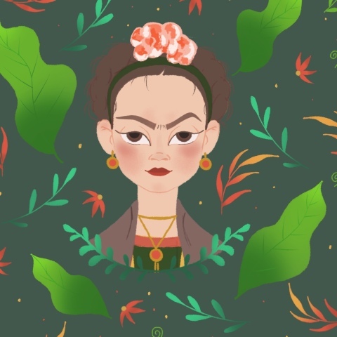 Фрида кало цветы паттерн синий листья лицо этника мексика