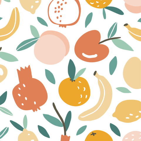 Фруктовый паттерн: яблоки, бананы, персики, апельсины
