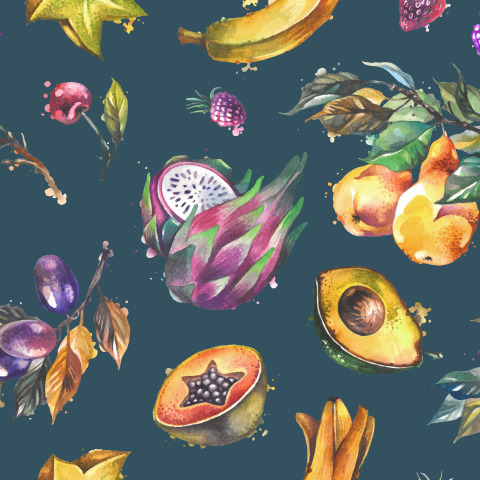 груша слива драконий фрукт фрукты фруктовый банан авокадо черешня клубника ежевика малина папайя акварель