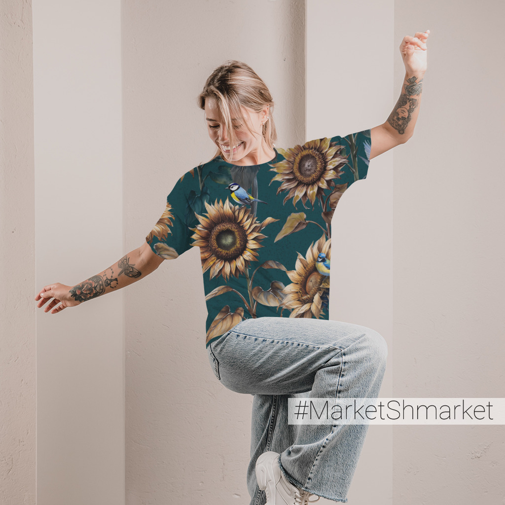 Внутренняя часть материала - хлопковая и приятная к телу, наружная - полиэстер на которую ложится яркая печать и не выцветает после большого количества стирок. Модель - умеренный оверсайз.