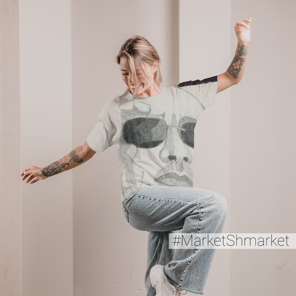 Внутренняя часть материала - хлопковая и приятная к телу, наружная - полиэстер на которую ложится яркая печать и не выцветает после большого количества стирок. Модель - умеренный оверсайз.