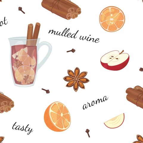 глинтвейн напиток еда кухня корица приправы специи гвоздика анис чашка яблоко апельсин скатерть кулинария текст слова