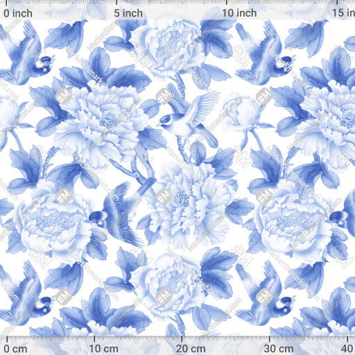 Голубые пионы и птички на белом фоне by KateDemyanovska 469 DPI