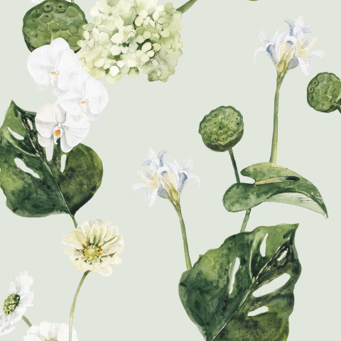 Гортензия и тропический листья