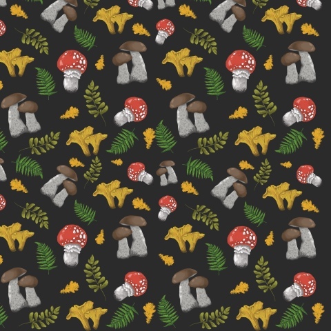 грибы, осень, паттерн, узор, природа, растения, мухомор, листья, лето, настроение, новый, интересный, осенний, орнамент, бесшовный, красочный, набор