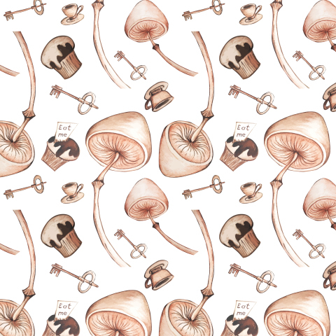 белый бежевый коричневый алисавстранечудес алиса чашки грибы ключи кексы
