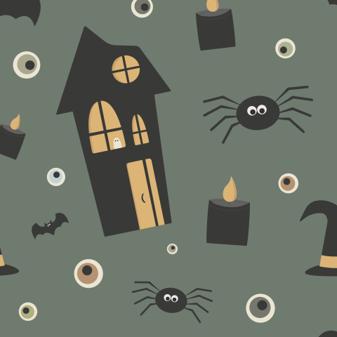 Хеллоуин. Свечи, пауки, летучие мыши и глаза (зеленый)