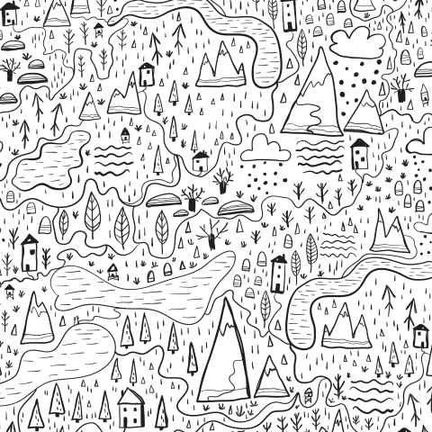 карта лес горы гора озеро ландшафт лес природа река местность скетч мило нарисовано сосна дерево скандинавский