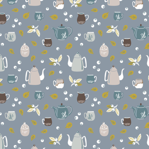 Керамическая посуда, ягоды и листья. Ретро орнамент.