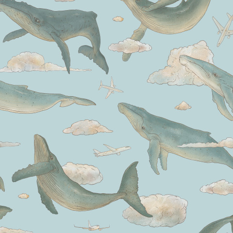Киты с самолётами в небе