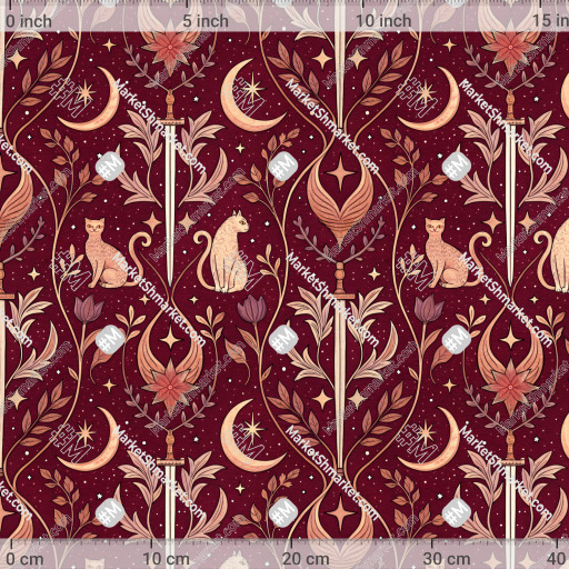 Кот, кошка, коты, цветы, листья, средневековье, готика, гобелен, бордовый, стильный, модный, бордовый, женский, смешной