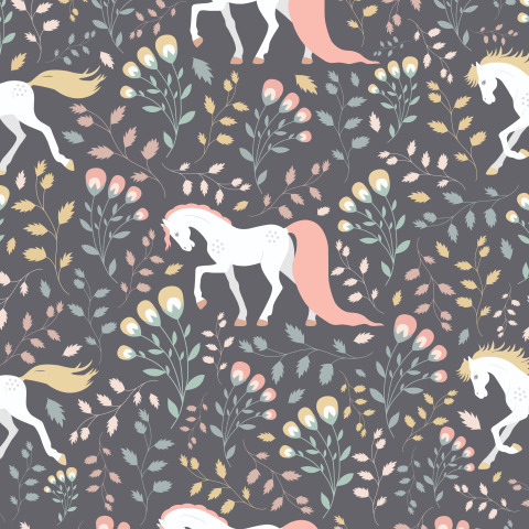 Красивые лошади на цветочном фоне