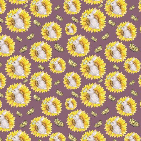 Кролик в подсолнухе на бордовом фоне