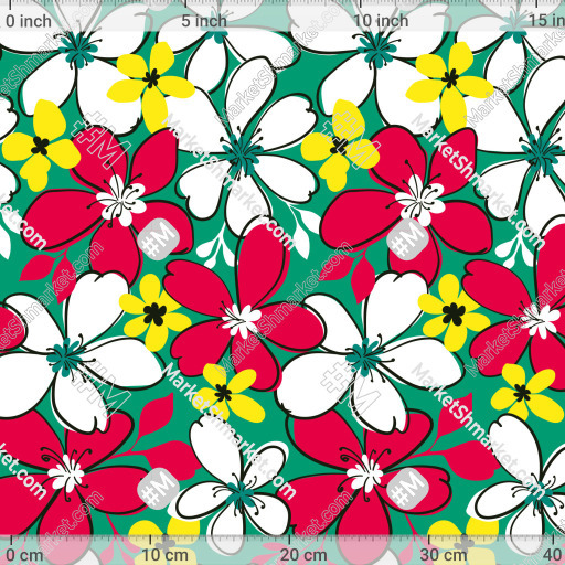 Крупные белые и розовые цветы на зеленом фоне by Bolotova Tatyana 300 DPI