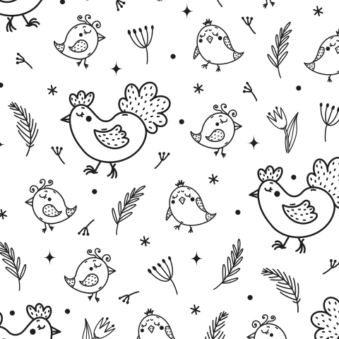 Курочка и цыплята гуляют на лугу с травами и цветами