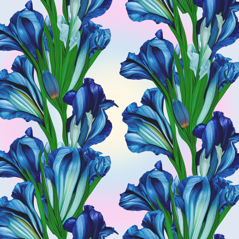 Крупные акварельные цветы ирисы