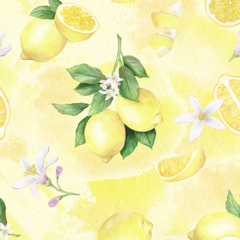 акварель лимоны цитрус Витамин ц желтый свежий яркий лимон лимонный цветок цветы долька ломтик половинка листья зеленый лето сочный веточка еда ботаника ботанический летний
