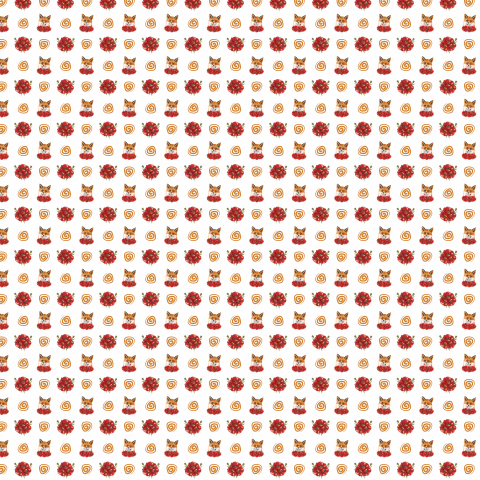 Лиса на белом фоне с маками и завитусшками