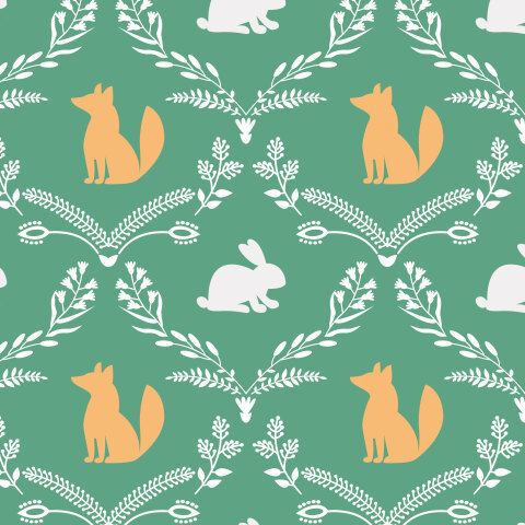животные, зверята, лисица, лиса, заяц, растения, ботаника, цветы, листья, зеленый, белый, оранжевый, серый, куртка, платье, подушки, лесной, скандинавский, природный, принт, детский, классика, ромб, мелкий