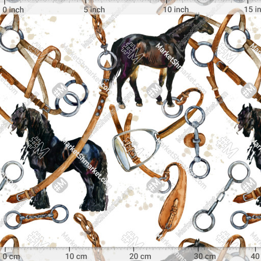 лошади и сбруя. кожаные ремни акварельный принт by FineArt 366 DPI